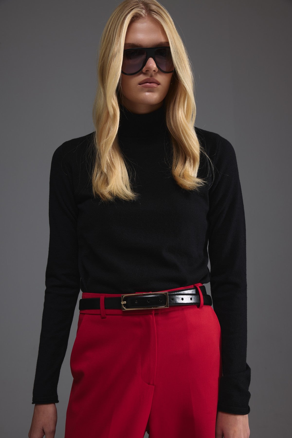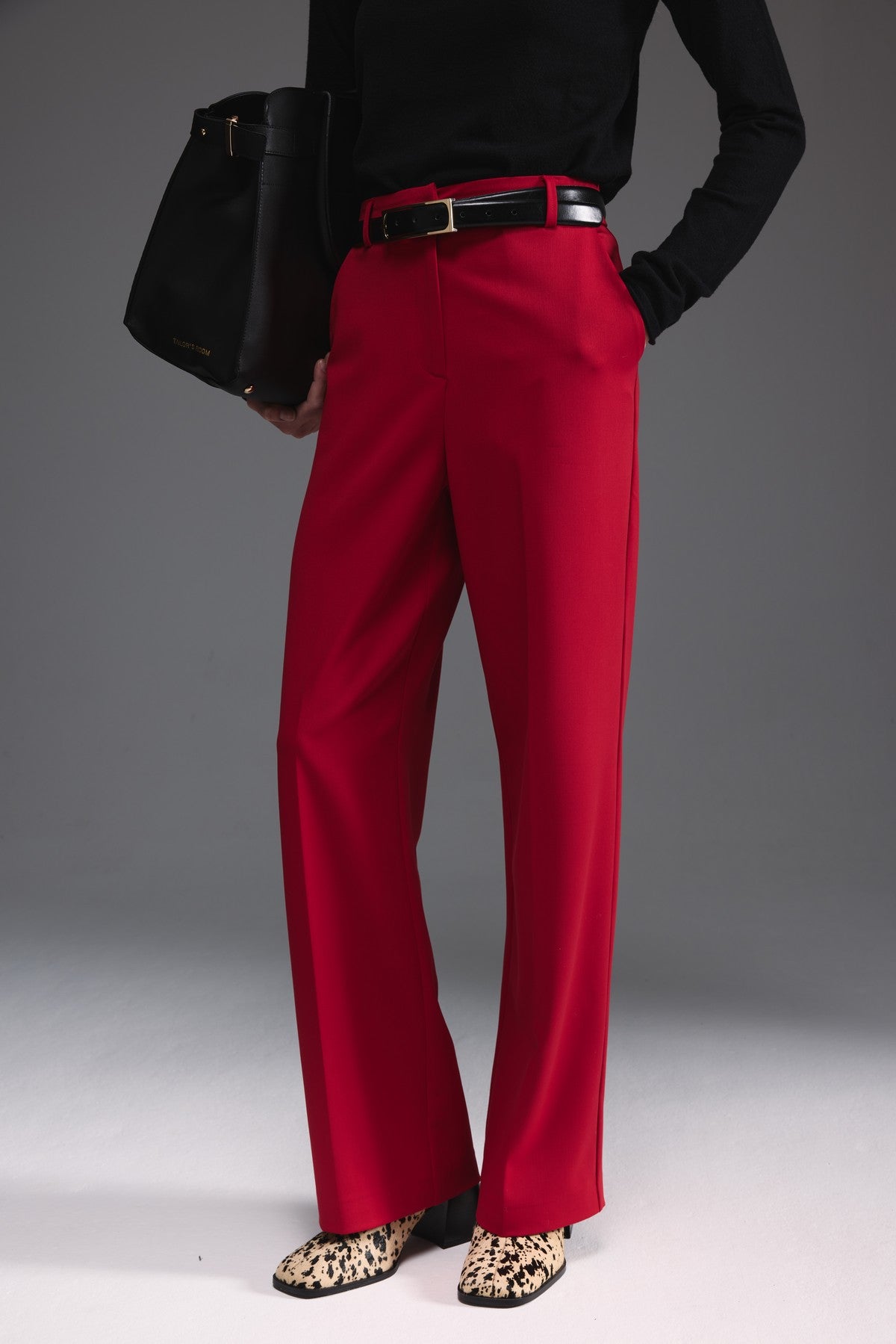 Düz Kesim Yüksek Bel Pantolon - Kırmızı