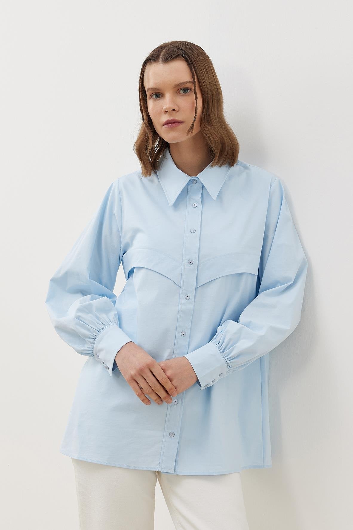 Manşet ve Kol Detayları: Kol ağzındaki büzgüler ve manşetler, gömleğe sofistike bir dokunuş ekler.