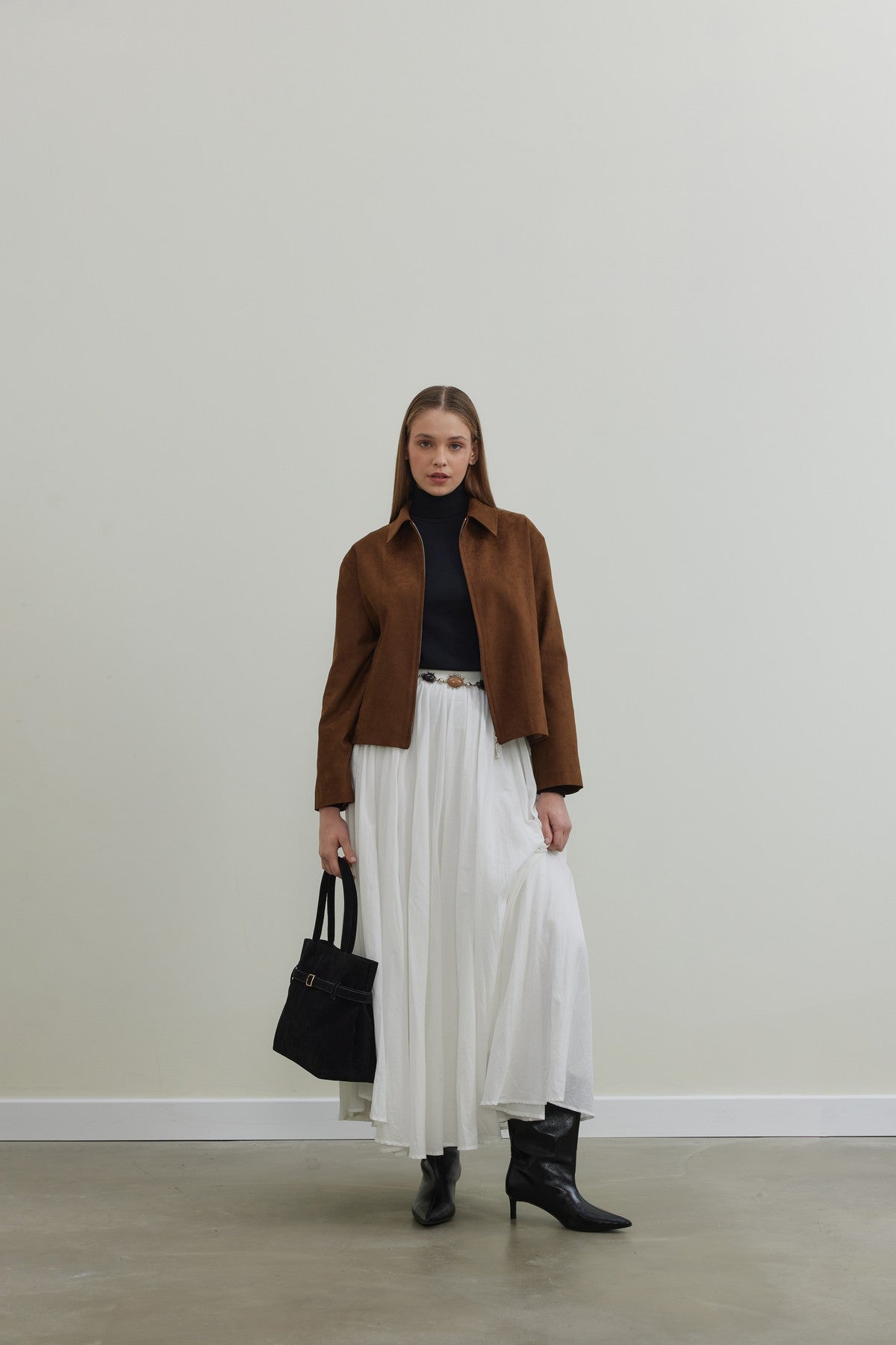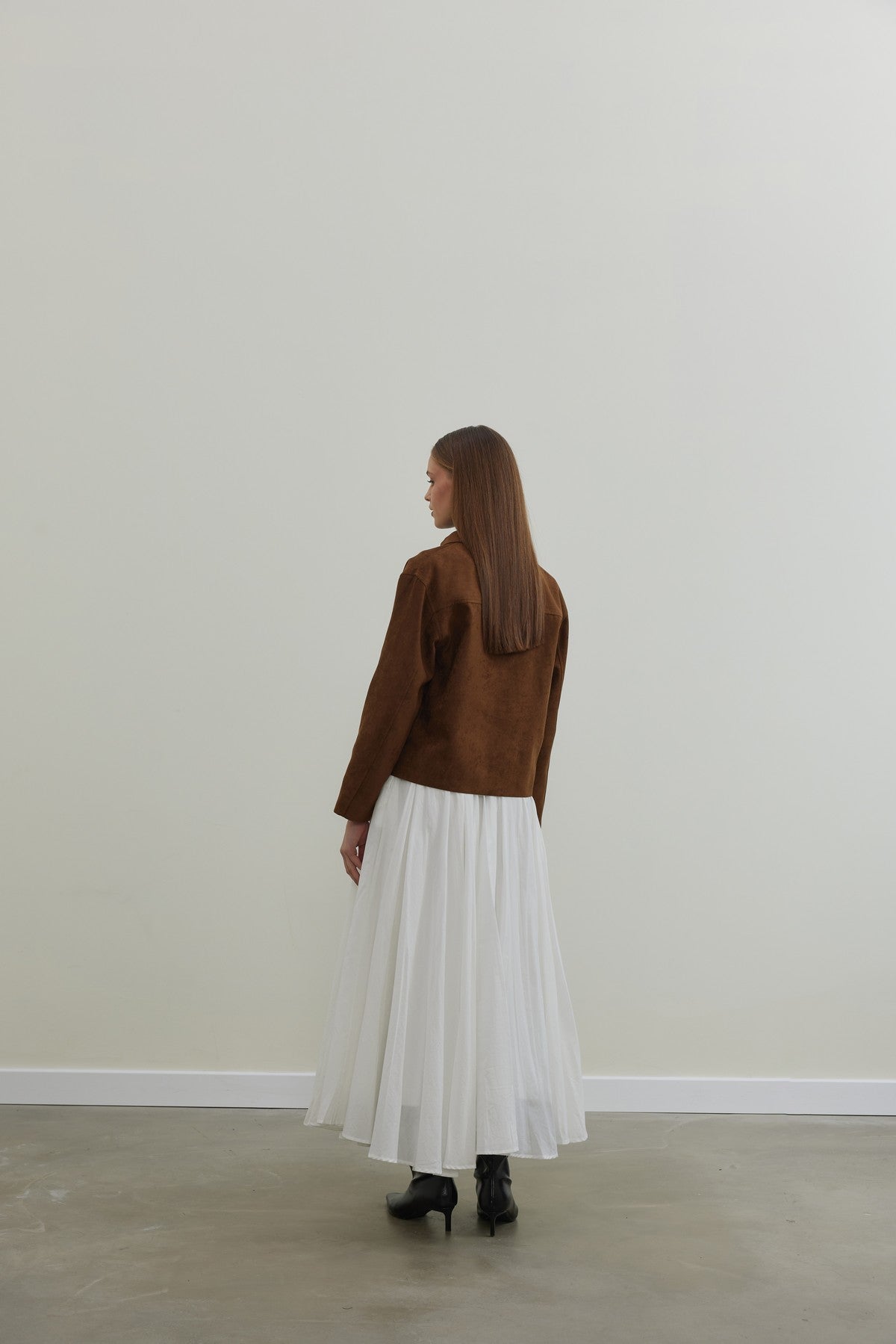 %100 pamuk dokuma kumaştan üretilen Vual Etek, hafifliği ve yumuşak dokusuyla gün boyu konfor sunarken, modern hacimli kesimiyle şık ve zarif bir siluet oluşturur. Esnek beli ve pratik cepleriyle fonksiyonel bir kullanım sağlarken, akıcı yapısı sayesinde her mevsime uyum sağlar. Günlük şıklıktan özel etkinliklere kadar geniş bir kullanım yelpazesi sunar.