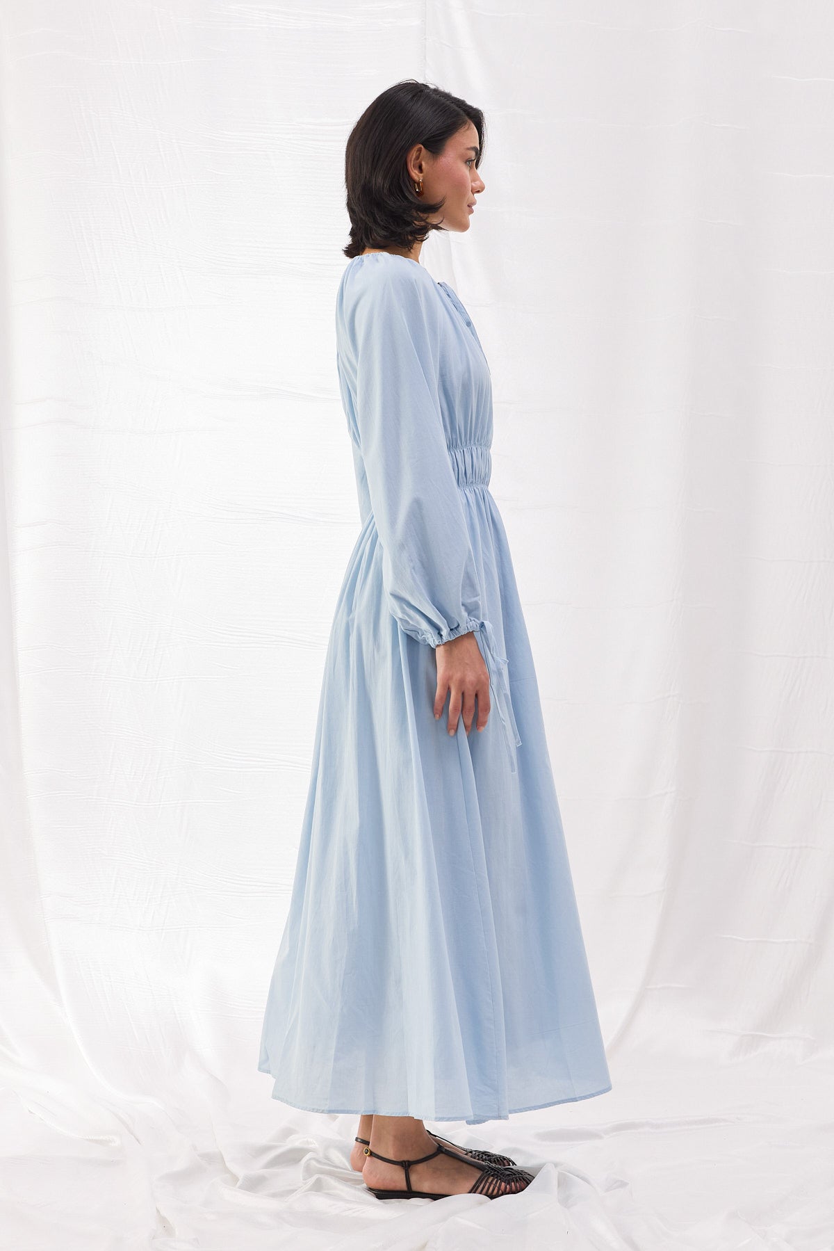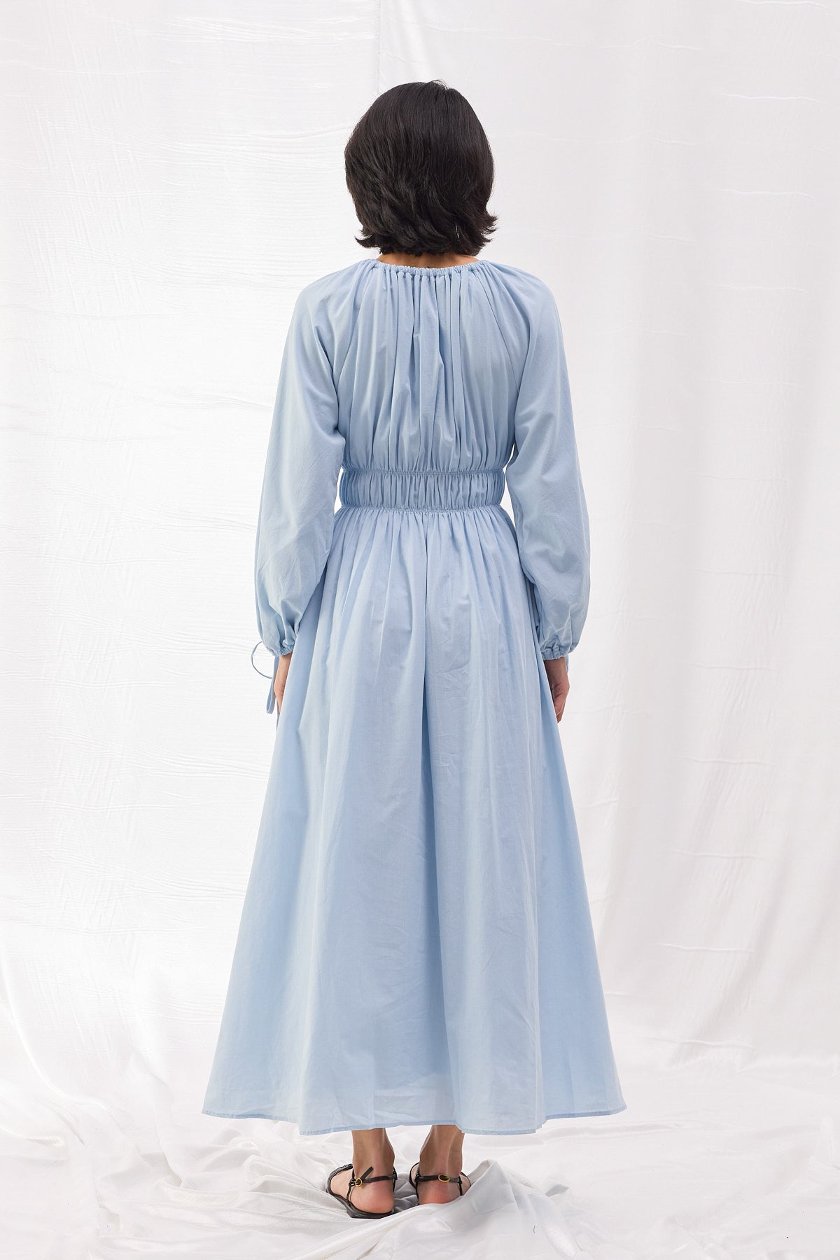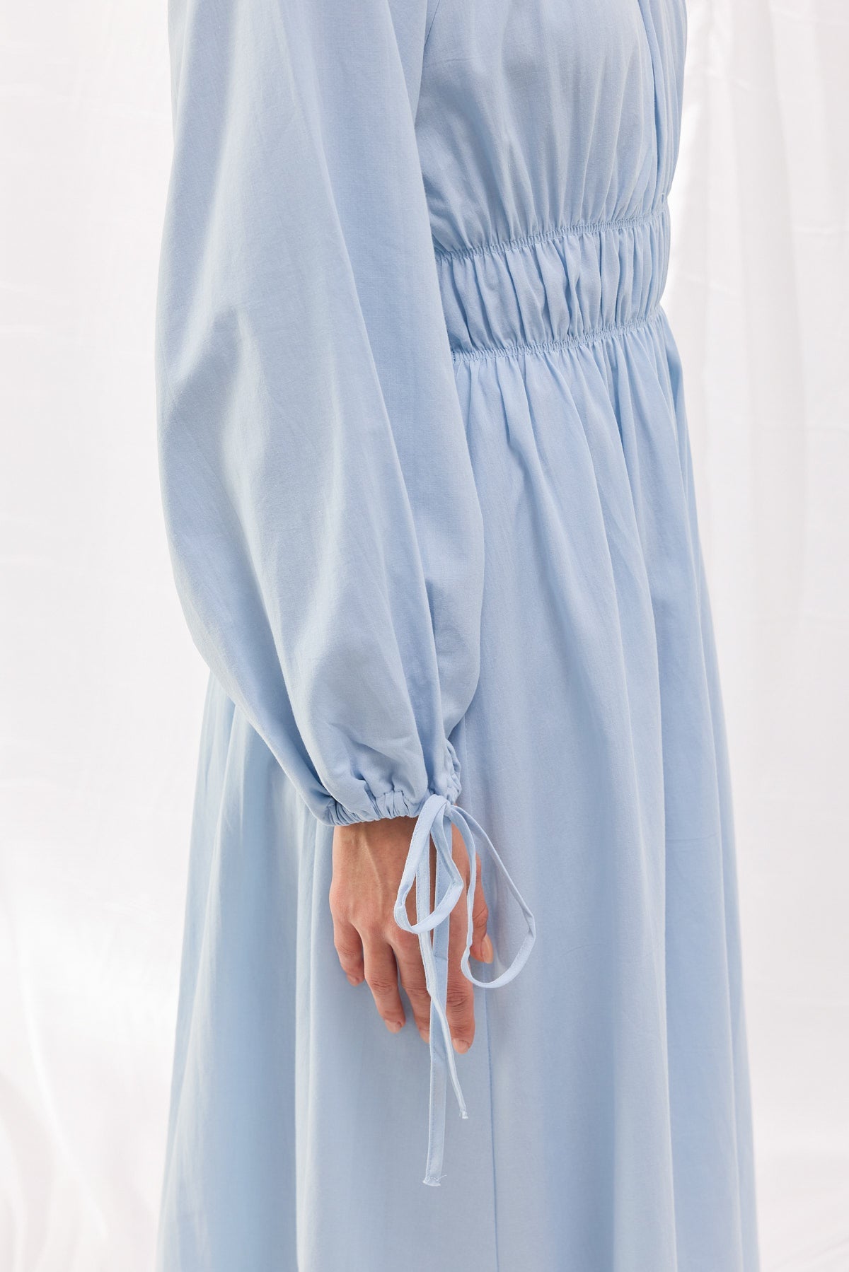 Pamuk dokuma kumaştan üretilen Beli Büzgülü Vual Elbise, şıklığı ve konforu bir araya getirerek her ortamda zarif bir duruş sergilemenizi sağlar. Bel kısmındaki lastik büzgü detayı, vücut hatlarını zarif bir şekilde vurgularken, hacimli balon kollar ve bağlama detayları modern bir dokunuş sunar.