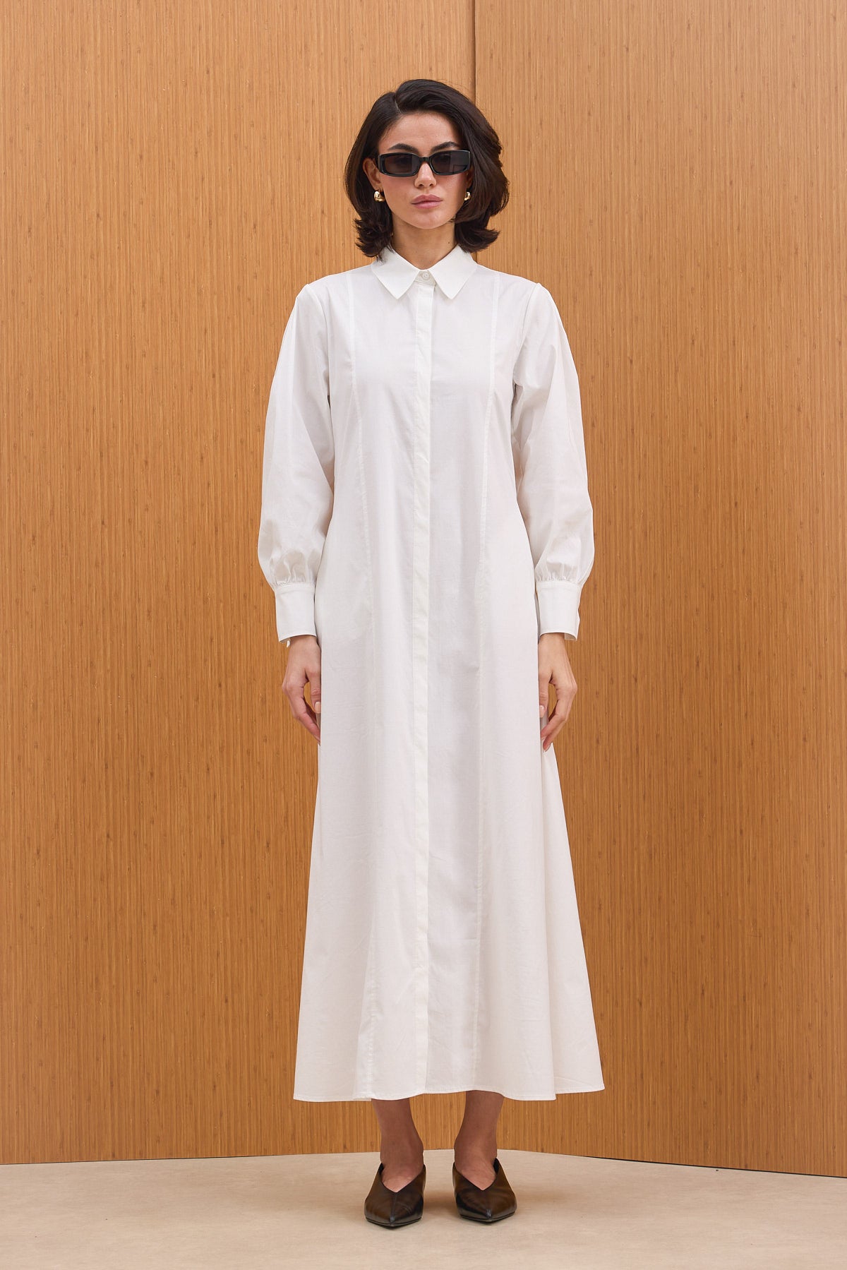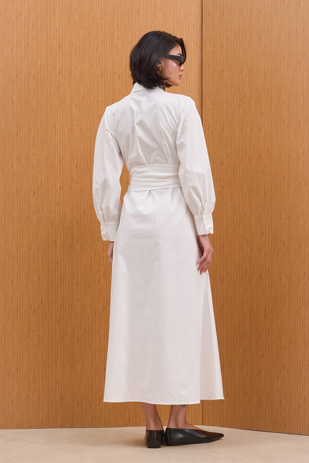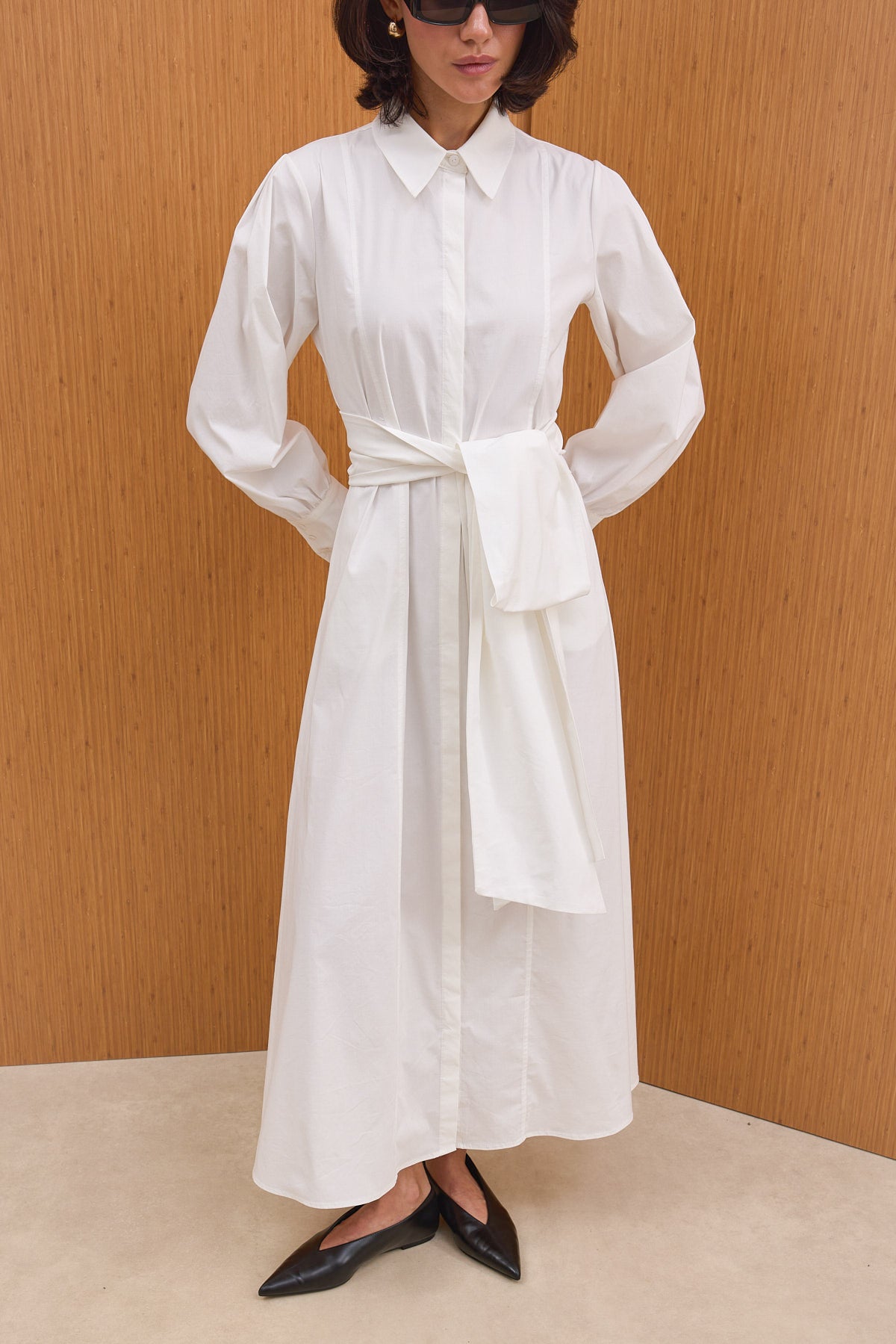 Çift Kuşaklı Gömlek Elbise - Beyaz