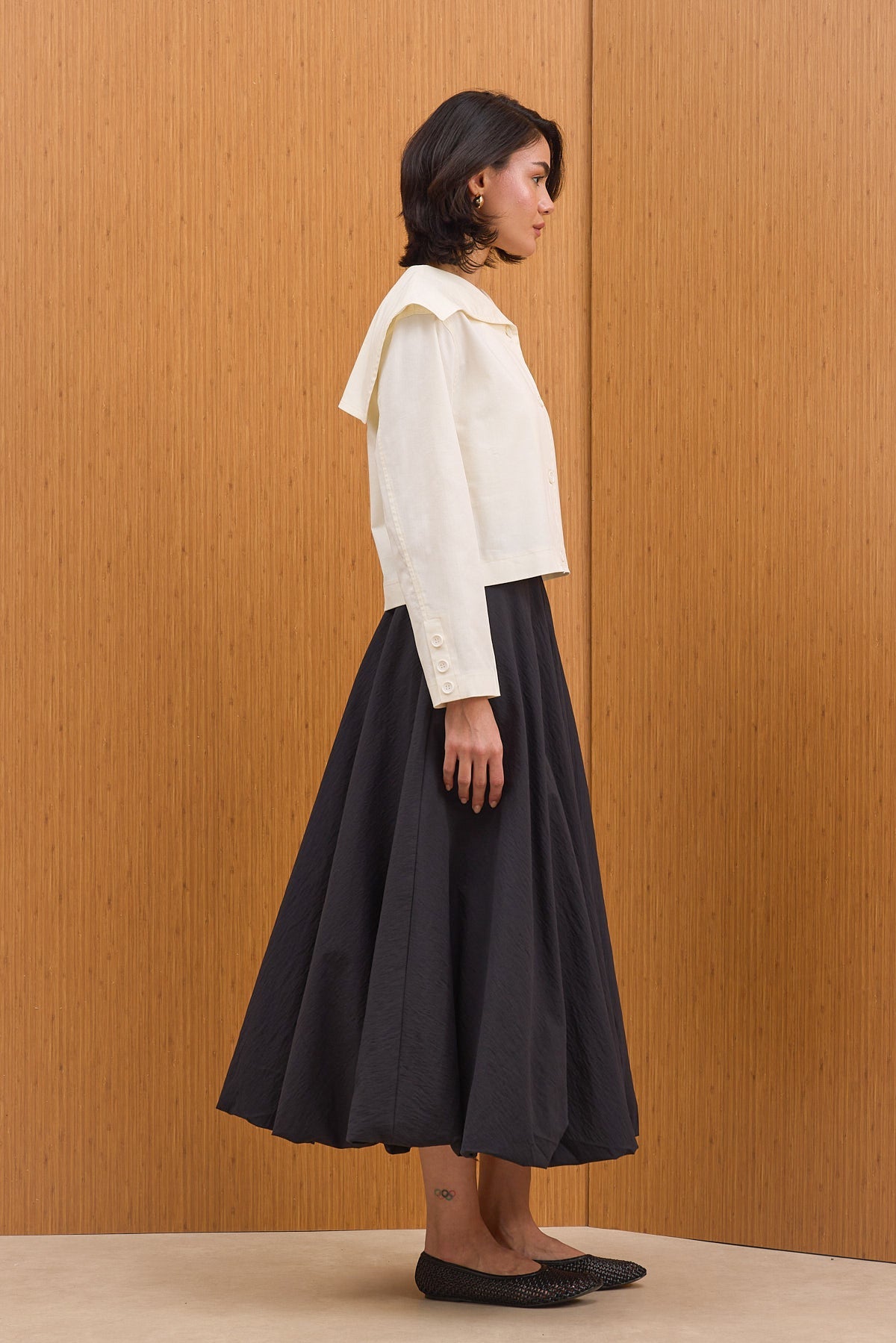 Pamuklu kumaştan üretilen balon etek, modern ve hacimli kesimiyle stilinize hareket katar. Bel kısmındaki ince bant detayı ve yumuşak dokusu sayesinde gün boyu konfor sunarken, yan cepleriyle pratik bir kullanım sağlar. Astarlı yapısı, iç göstermeyen ve hafif bir kullanım imkanı sunarak her mevsimde şıklığınızı tamamlar.